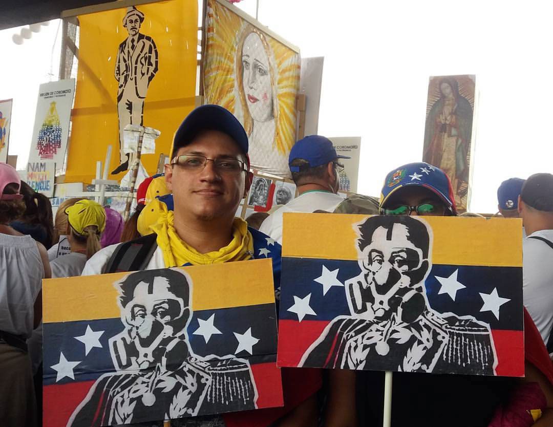 Here are some pictures of people and situations in which the piece "Simon Bolivar in a Gas mask" had some impact and symbolism. From left to right: The guatemalan politologist Gloria Álvarez, a Stencil in Wynwood Miami art district proped by street artists Mstrmnd & RCR7 and some regular people using printed copies of the piece in protests in Caracas of 2017.