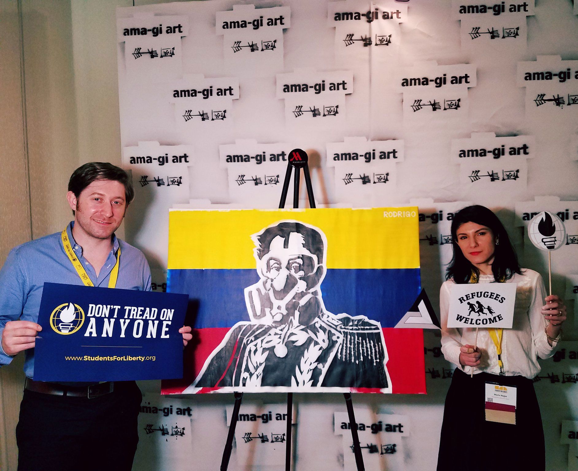 I donated this piece in 2016 to "Students for Liberty" libertarian nacional students asociation in the USA. Here you can see some of the most significant people and situations this piece has been involved in.