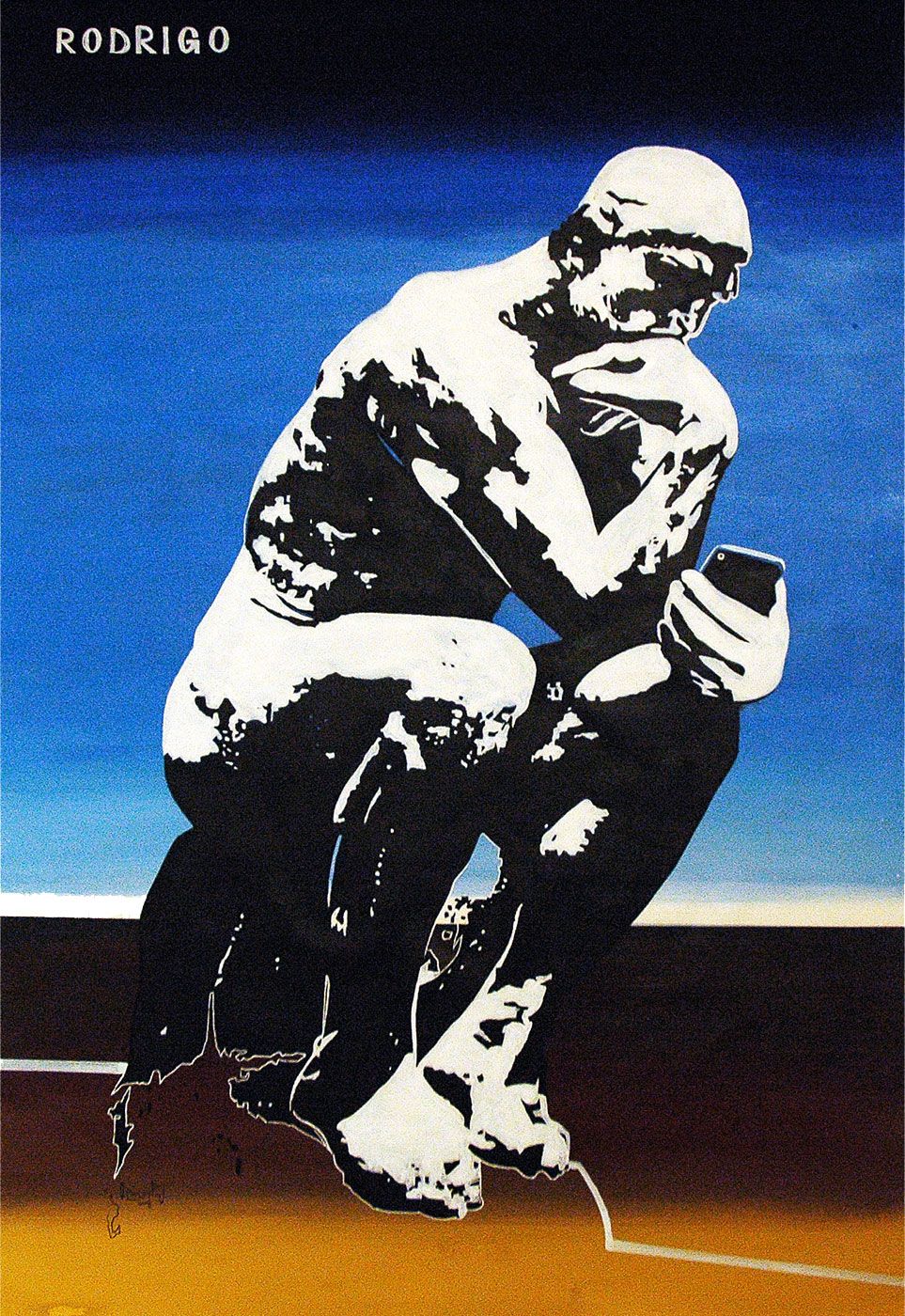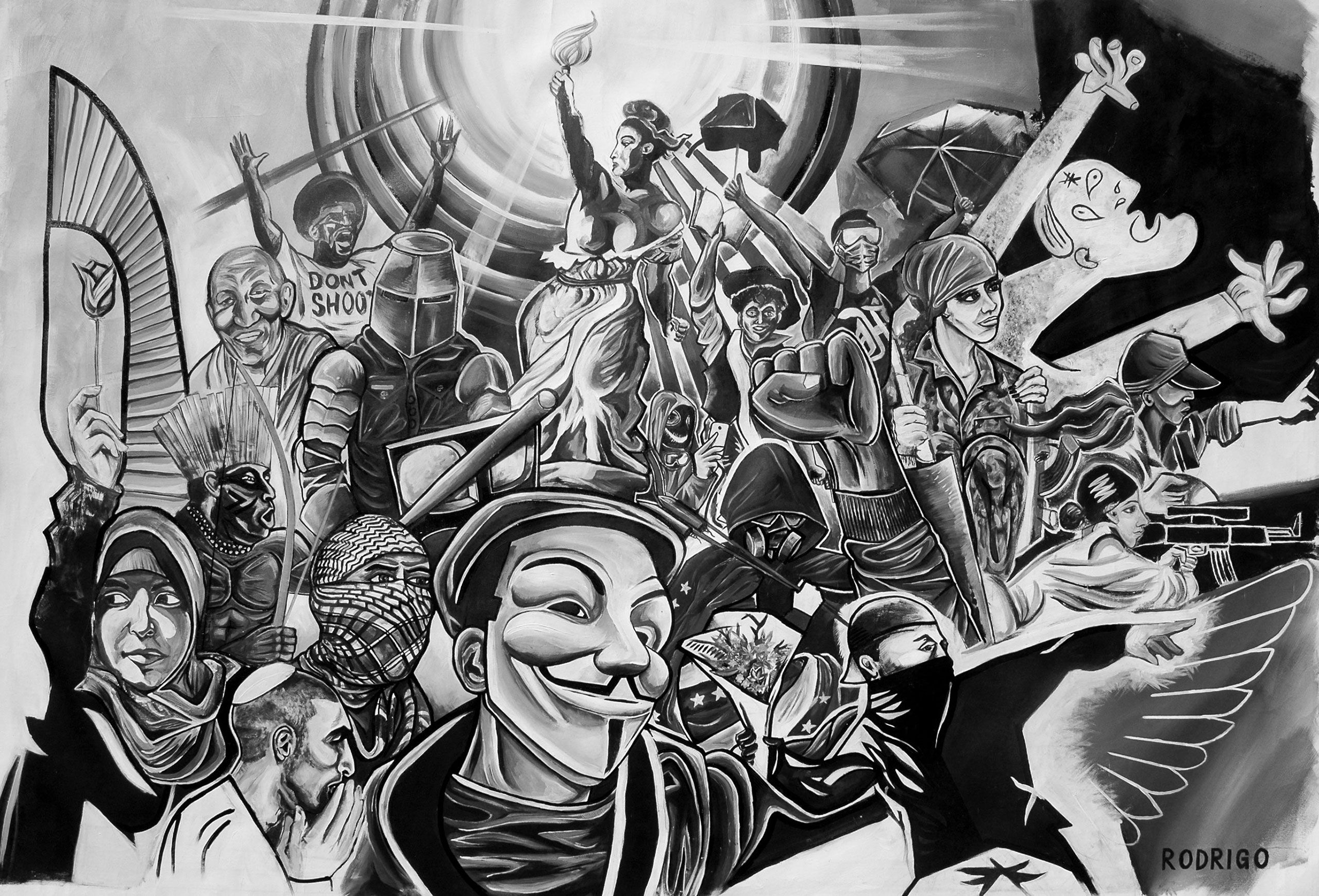 Rodrigo is a politologist and an internationally engaged human rights activist known for his work and influence in the fight for universal freedom, justice and democracy with his art and comunication via social networks and new tecnologies. All pieces on social, cultural, spiritual, political and philosophical thematics. This is the section where you can grasp the artist's message and vocation to use art as a means to promote a better and just world. CLICK to go to section.