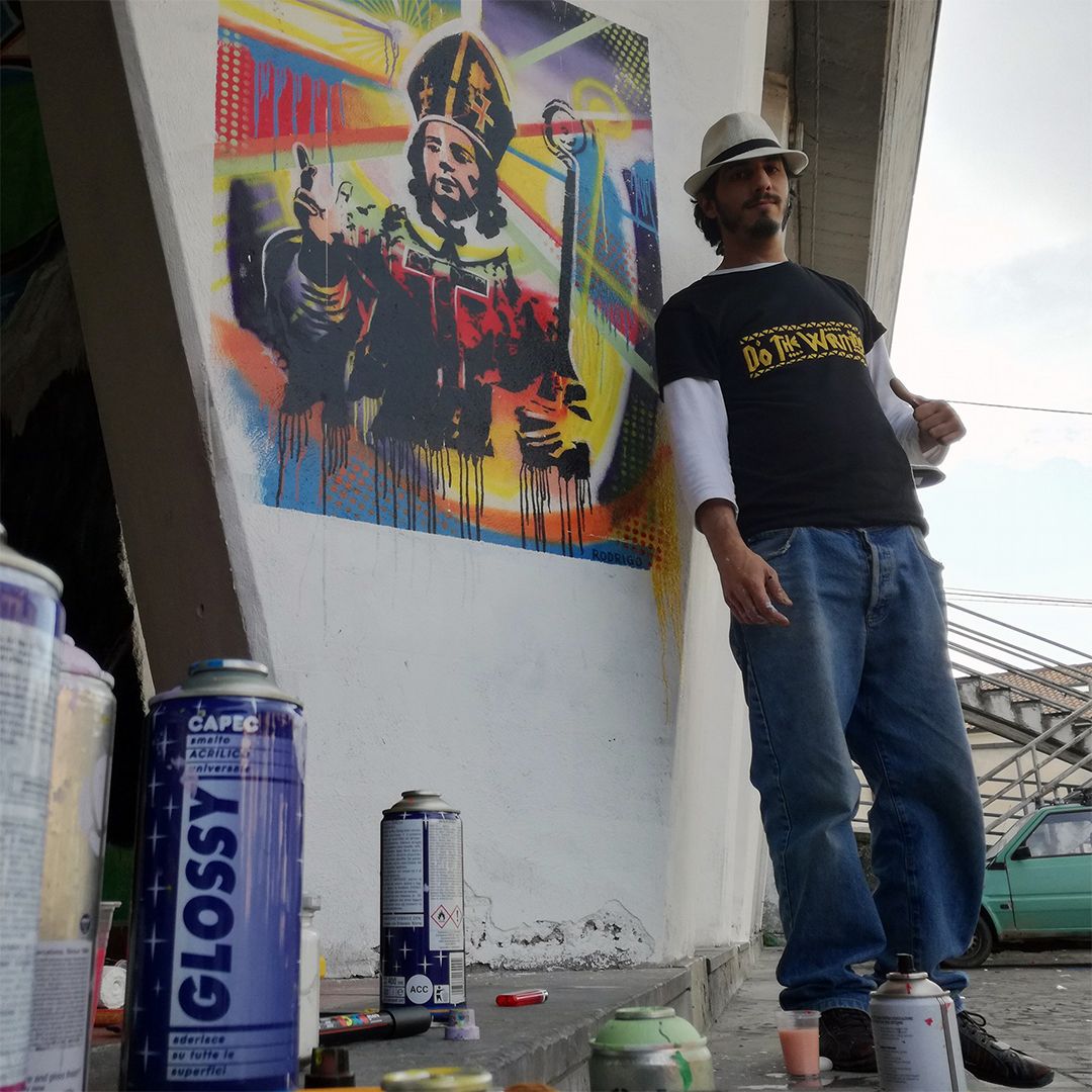 For me, this is one of the most significant pieces I've done, It took me a long time to prepare the stencil taken from a photography of the statue of the real saint Patron of Marsico Nuovo, the village from where my grandfather and grandmother emigrated from to Venezuela, where my mom grew to become the wife of the Venezuelan minister of foreign affairs and having me to become a global multicultural citizen who came back generations after to mix, bring and add create something new from that old originary culture that (as my venezuelan roots and swiss education) is also running through my veins.