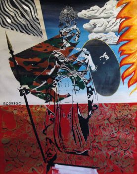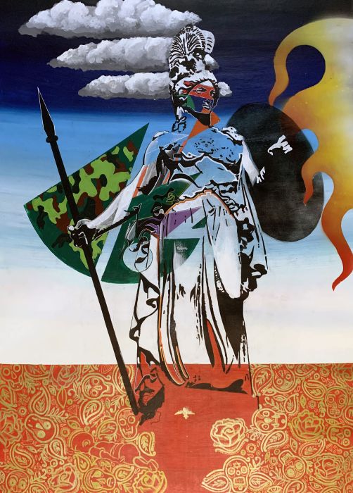 "Athena 2 - La Victoire de l'Occident" is a commissioned work based upon my original work "Athena". A few months ago, I high-school friend (we’ll call him “AC”), reached out and we talked about our separate journeys, how the world had changed since we were at school some 25 years ago and my artistic interpretation of events. AC had scrolled through my works on my website and was enamored with "Athena", but given the original work was already in a private collection, I offered to create a new version.