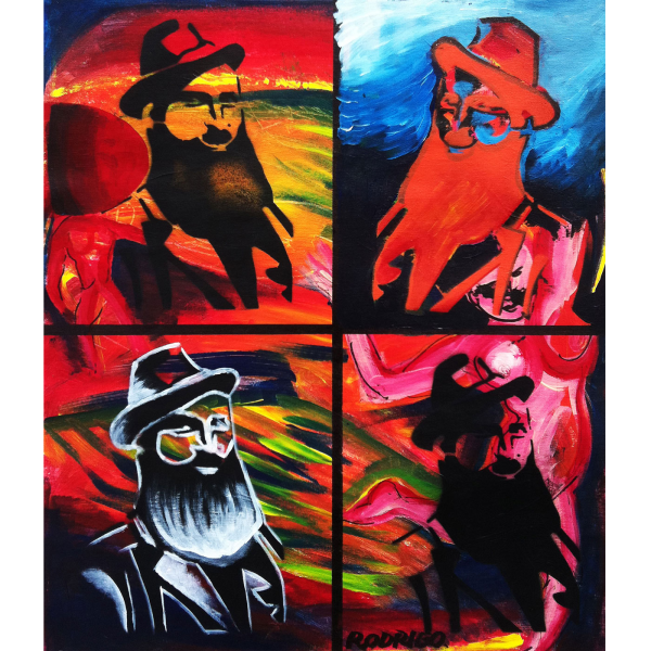 This is a piece inspired by the Briganti of the south of Italy, specifically in Carmine Crocco from the end of the 19th century who was a sort of rebel/guerrillero from the Basilicata. He represents a sort of stance of resistance against the northern annexation of the reign of the two Sicily by the Piemontese. I made a stencil of it I used in this unique piece that I made in a very spontaneous manner (recycling a study) mixed with the popish repetitions to enhance the contrast.