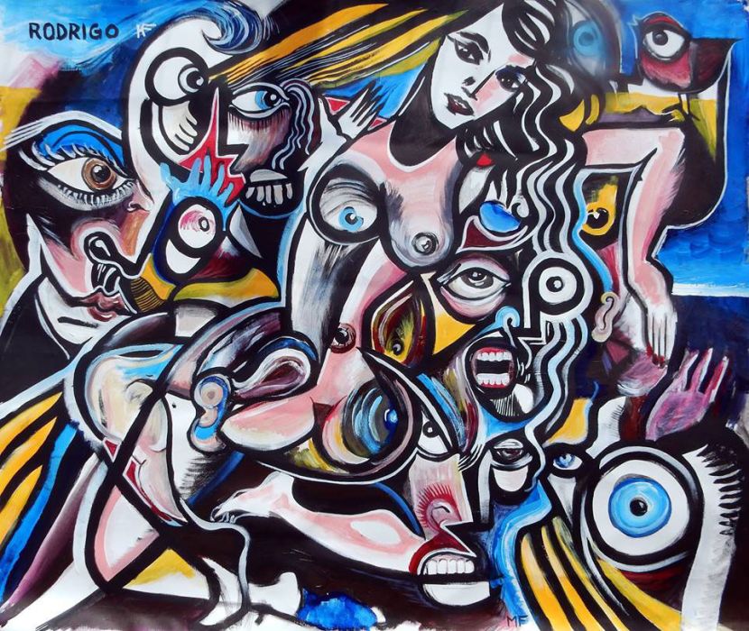 "La soñadora" is the result of a whole evening of painting with my sister Margarita. I really like the fact that we could impro on a piece and still come up with something this strong and coherent. Create in family, in this case, was fun and moving. Its the best piece we've done together (we've done a few) in such a short but intense moment. Margarita is a great artist with a lot of sensibility, we're the artists of the bunch, the dreamers.
