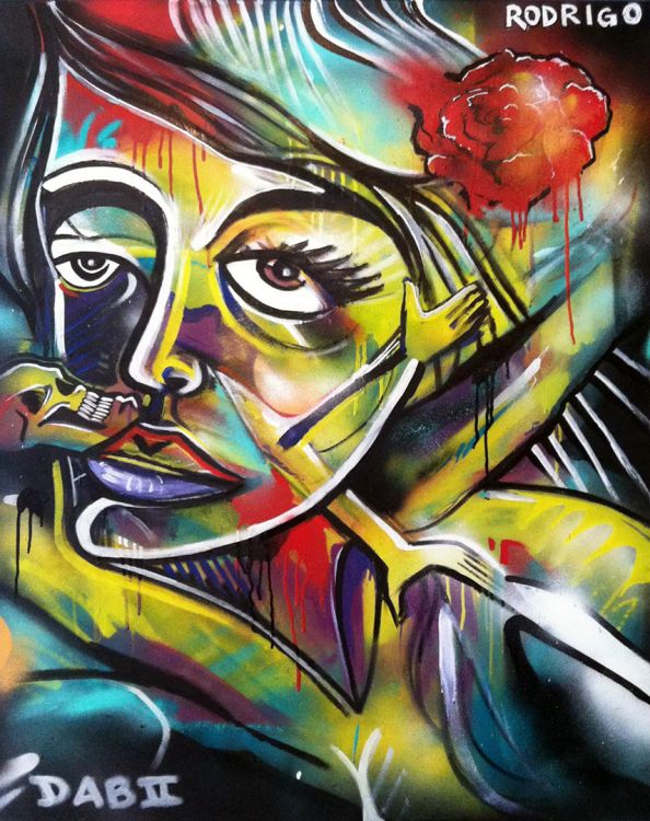 That said in french (it had to be said in the language and vibe spoken at the time of the creation in Geneva. This is a 4 handed piece that I painted in colaboration with the Graffiti artist Dab 2 during a well rhumed night listening to the new album Maeki Maii had just finished producing entitled like the piece "Flamenco" (or vice versa). Another funny thing about this piece is that I putted it on display at a Paint shop in Nyon that same year and after two weeks, a misterious client bought it and his identity was never known.